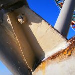 従来のサビ止め処理では、ある期間が経過すれば、再び錆びは浮いてくことがあたりまえでした。特に海岸沿いに面した当施設の場合、塩害による腐食は特に早く進行します。